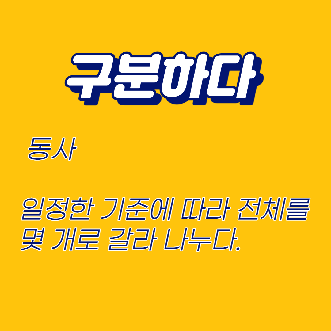 구분하다는 동사로 일정한 기준에 따라 전체를 몇 개로 갈라 나누다라는 뜻을 가지고 있습니다.