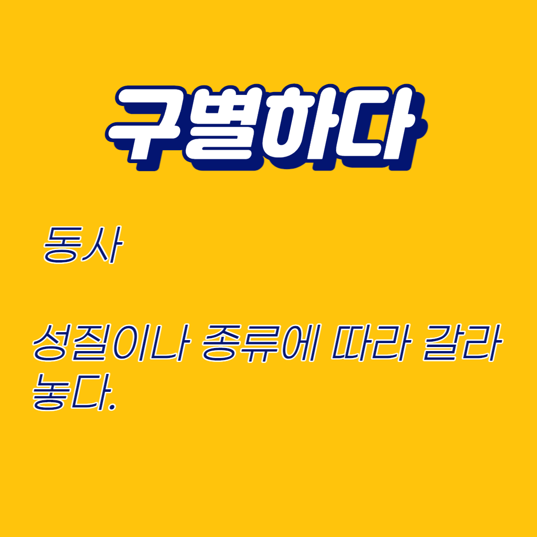 구별하다는 동사로 성질이나 종류에 따라 갈라놓다라는 뜻을 가지고 있습니다.