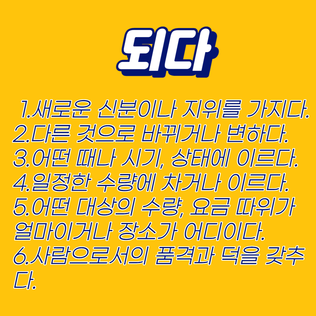 표준국어대사전에 따르면 '되다'가 가진 뜻은 상당히 많습니다.